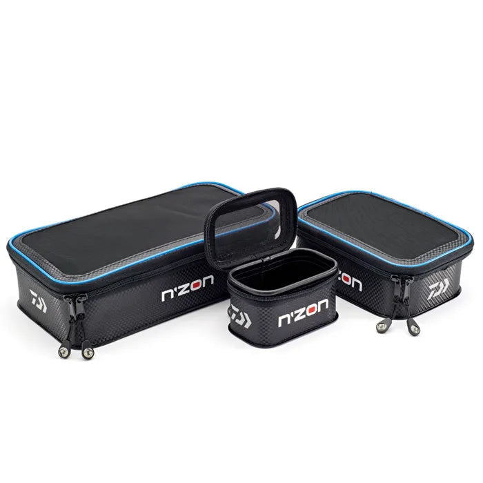 The compact fishing cases from Daiwa N'ZON EVA are perfect for the avid fisherman who wants to stay organized on their next adventure. The 3 piece set includes mesh bait bag with a reinforced rim for easy stacking and micro-mesh lids, which can be used separately or together depending upon what you're packing!