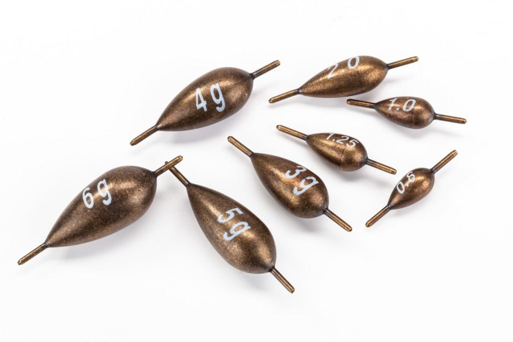 These olivettes are attached to the line with two pieces of silicone rubber, which makes them easy to move with no risk of line damage, even with main lines down to 0.10mm.