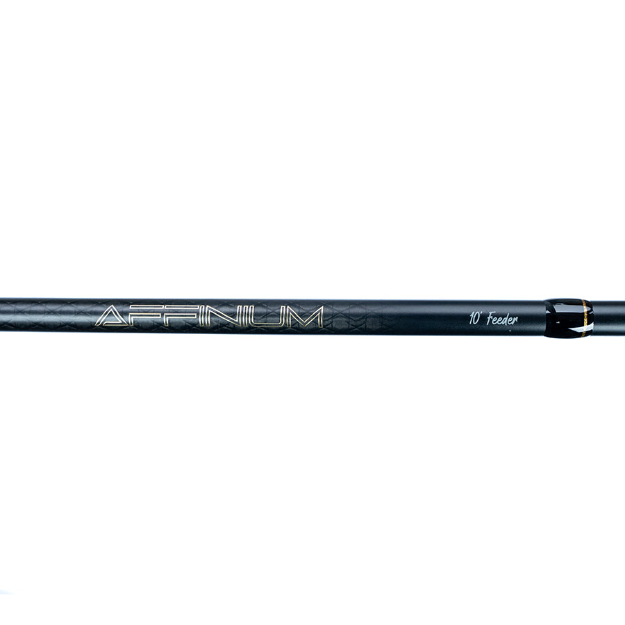 The Affinium 10ft feeder rod is the tool of choice when control and power is needed at close range. It's 10ft length encompasses power in a small package but with its progressive action 2 piece blank which is jointed via a balanced spigot that allows the transition of power right through to the butt section it means that the whole of its 260 g BTC can be used to play hard fighting fish under your feet and retaining the power to lift a fish’s head for netting. Equally comfortable for traditional style feeder work for smaller fish with lighter tackle due to its mid to fast action, this rod will absorb everything that can be thrown at it when stepping up to method feeder fishing for carp into double figures.