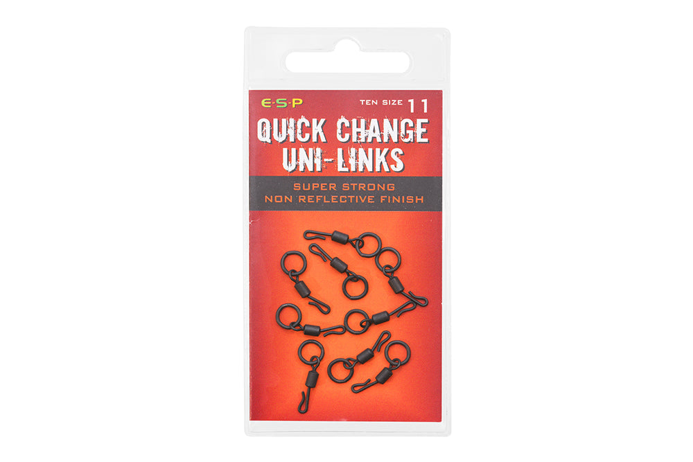 These matt black Quick Change Uni-Links can also be used on a helicopter rig where the crook allows quick change of a looped hooklink and the large ring provides a safe set up. The two different sizes can be tailored to different sized hooks and baits to create a perfectly balanced presentation.