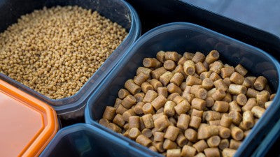 Heavy duty rectangle bucket with 4 internal storage containers, perfect for storing large amounts of particles, frozen live baits, ground baits, pellets, boilies etc.