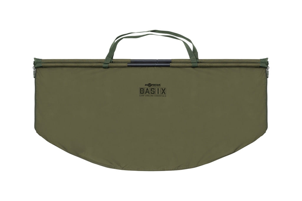 This weigh sling is constructed from a durable nylon material and is long and deep enough to weigh any carp that you are likely to catch in the UK, and is also suitable for use overseas on many venues. It features strong, lightweight powder-coated two-piece metal bars at the top, to give rigidity and to help make the weighing process safer for the fish. When not in use these bars can easily be split in the middle – they are elasticated - and the sling folded back into the compact stink bag that is supplied with it (the folded length allows it to fit inside the Basix Cradle unhooking mat or inside an exterior pocket on a Compac Rod Holdall).