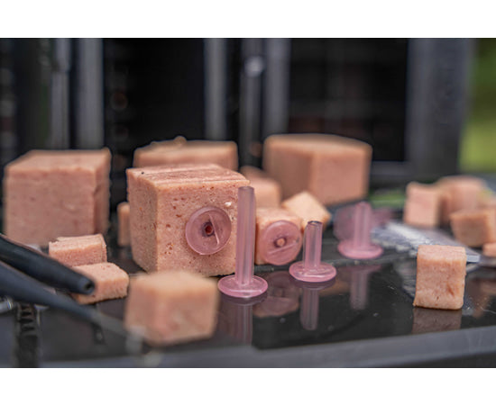 The Meat Stoppa provides a one-piece bait stop for soft baits like luncheon meat. Simply push into your hookbait then thread onto your chosen hair rig. There are two sizes, perfect for use with our dedicated Meat Cubers.