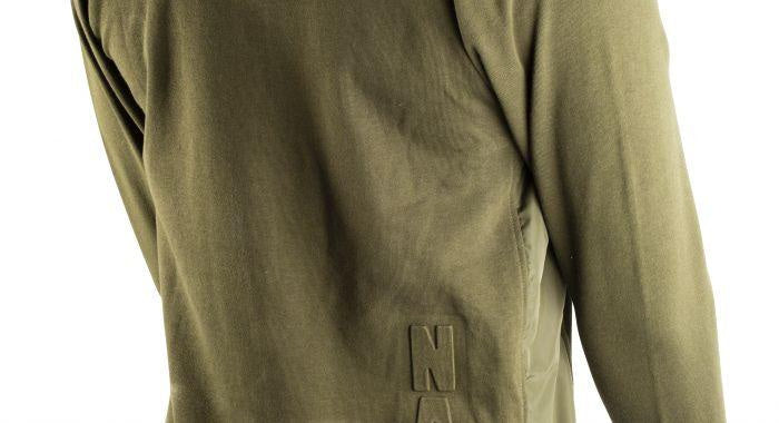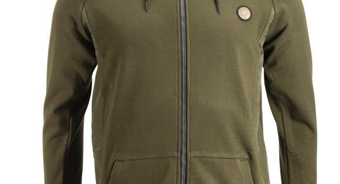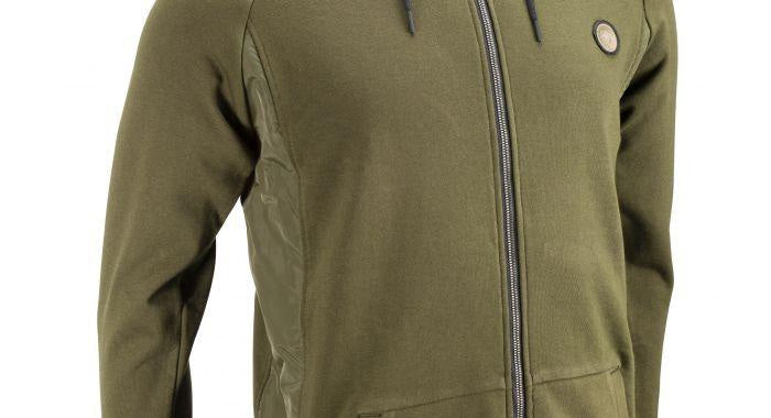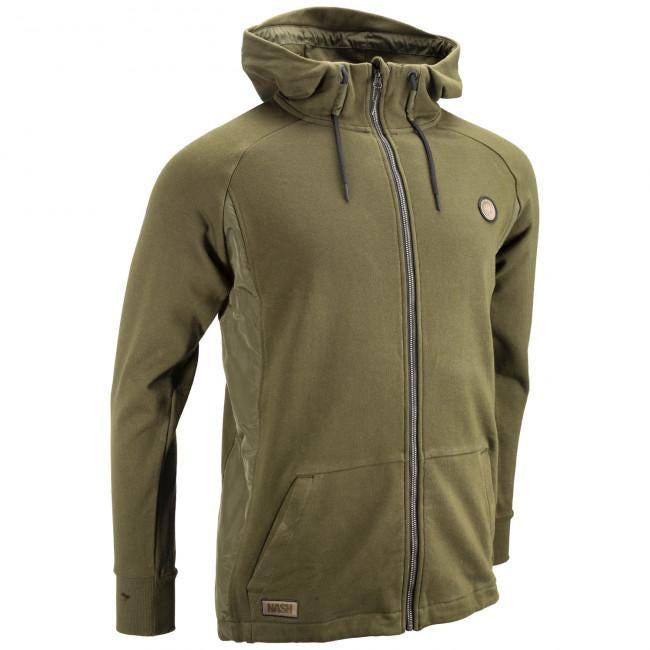 Classic heavyweight poly-cotton tracksuit top with lightweight nylon side trim, sculpted drawstring hood, twin hand pockets with internal press stud valuables pouch and chunky zip.